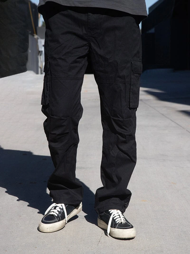 - Introducing our Ambush Cargo pants! Ambush cargo pants feature a button closure elastic waistband, side cargo pockets, and adjustable drawcord at the ankles for an industrial vibe with a little Reckless flare behind it.