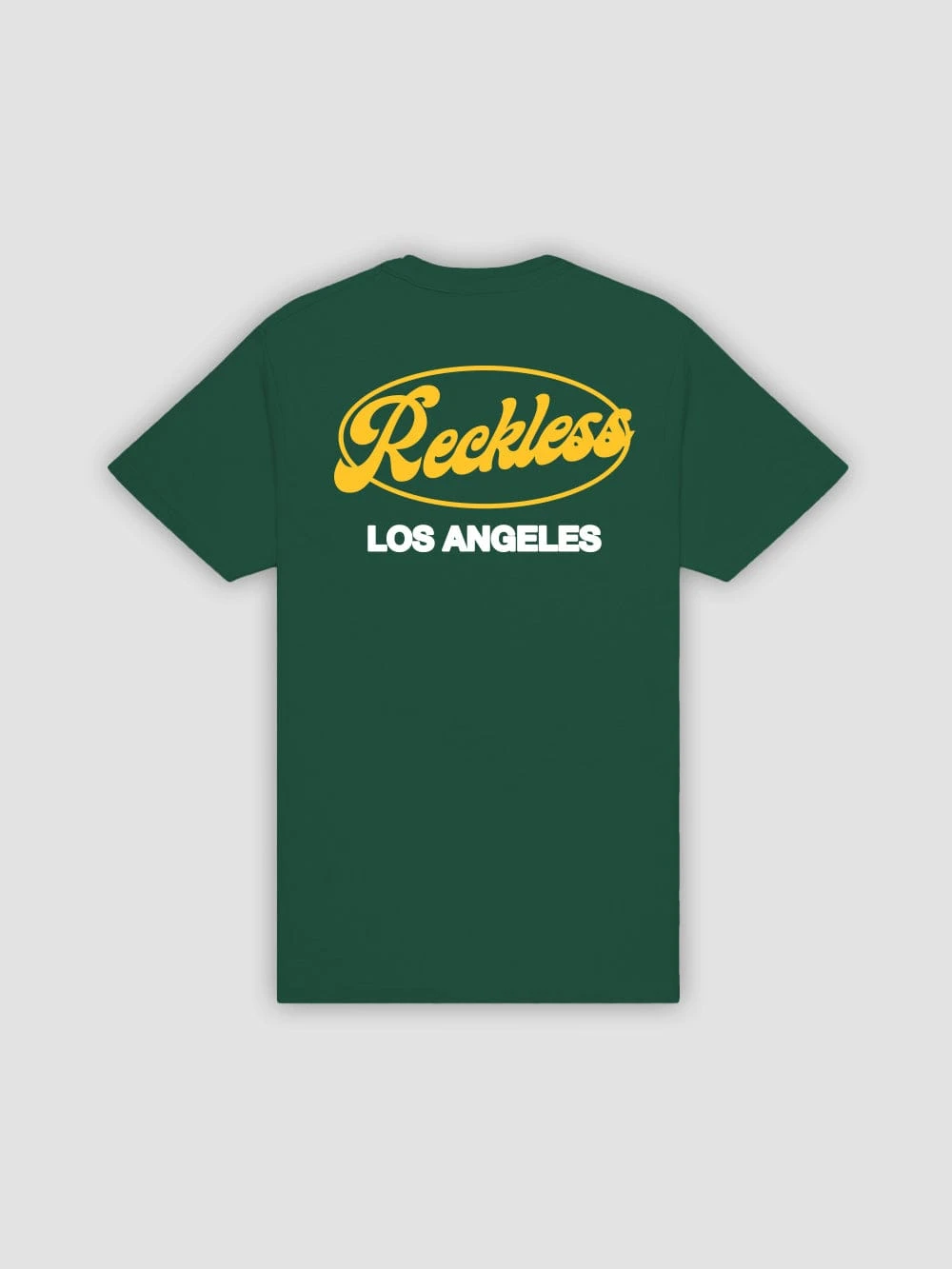 - Our District Tee in Forest Green features our RECKLESS logo on the front and back. T-shirt is short sleeved, and is cut to a standard fit.