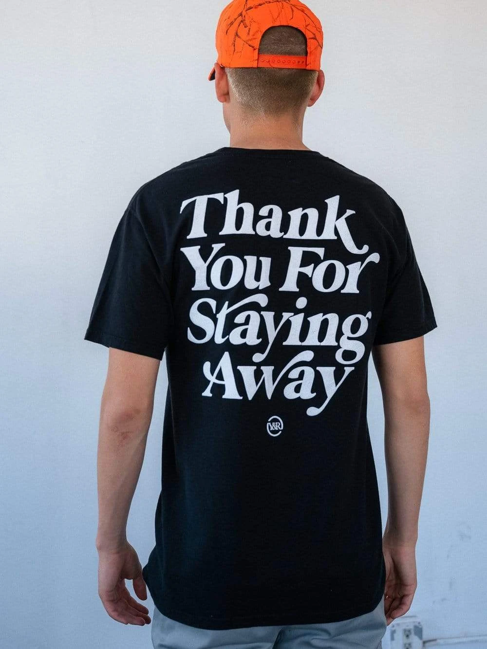 - Friendly reminder to please keep your distance. Black tee is designed with 3D puff print text on the front and back, and is cut to a standard fit.
